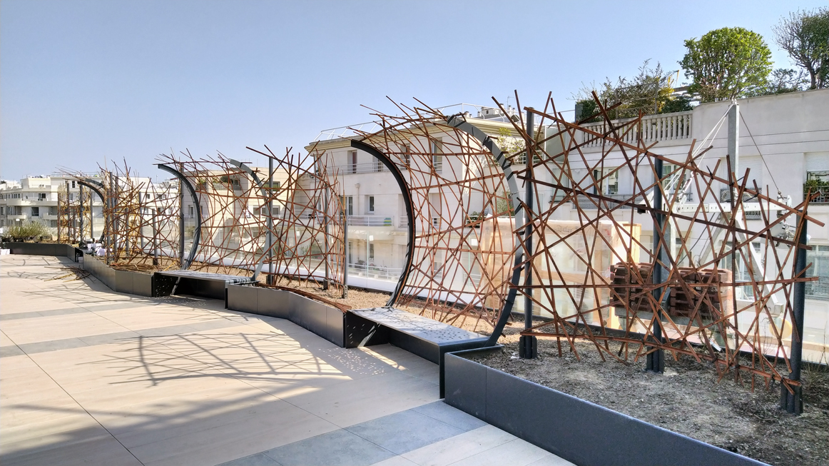 Allows plants to climb and block the view from a terrace on the 3rd floor of an office building nearest Paris